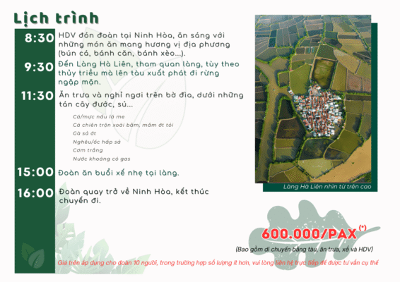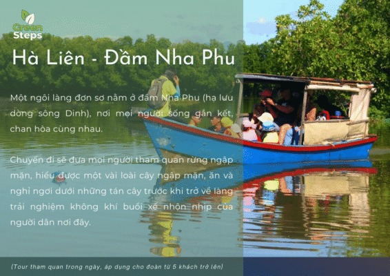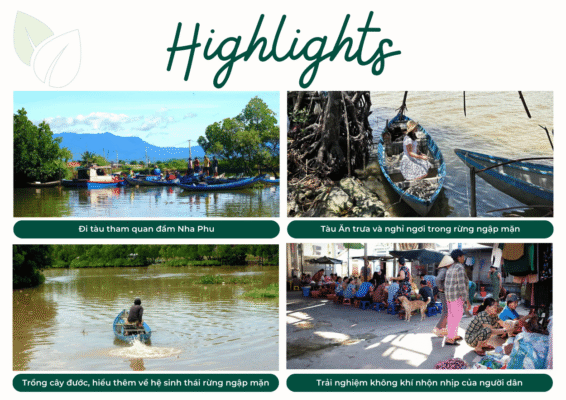 Một ngôi làng đơn sơ nằm ở đầm Nha Phu (hạ lưu dòng sông Dinh), nơi mọi người sống gắn kết, chan hòa cùng nhau. Chuyến đi sẽ đưa mọi người tham quan rừng ngập mặn, hiểu được một vài loài cây ngập mặn, ăn và nghỉ ngơi dưới những tán cây trước khi trở về làng trải nghiệm không khí buổi xế nhộn nhịp của người dân nơi đây.